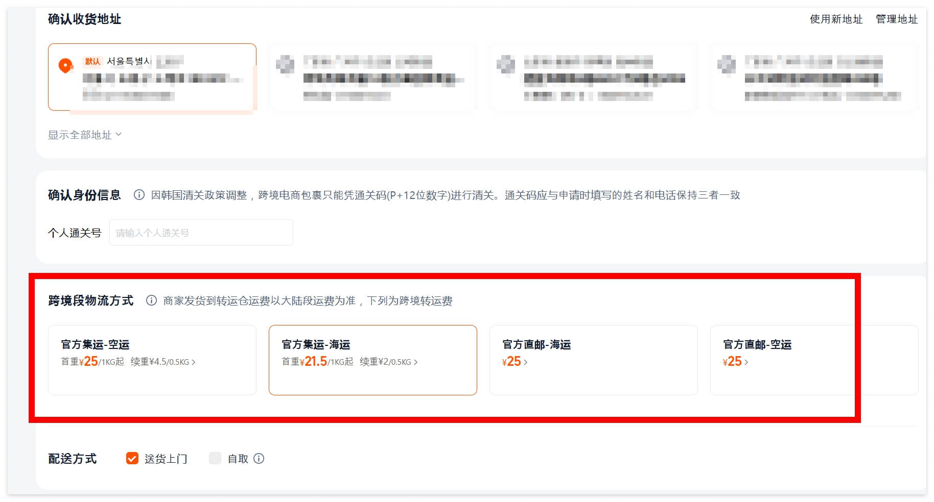 '분명히 상품을 구매할 때는 한국까지 배송이 된다고 했잖아.' 그런데 왜 배송이 멈췄지? 하실거에요. 중국어를 잘 보시면 한국까지 직배송되는 배송 방식을 선택해야 한국까지 원스톱으로 오는거에요.